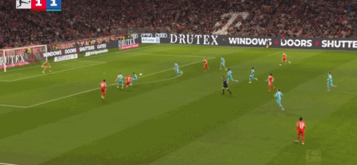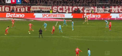 第45+2分钟,凯恩送助攻,迪亚斯破门,拜仁3-1霍芬海姆