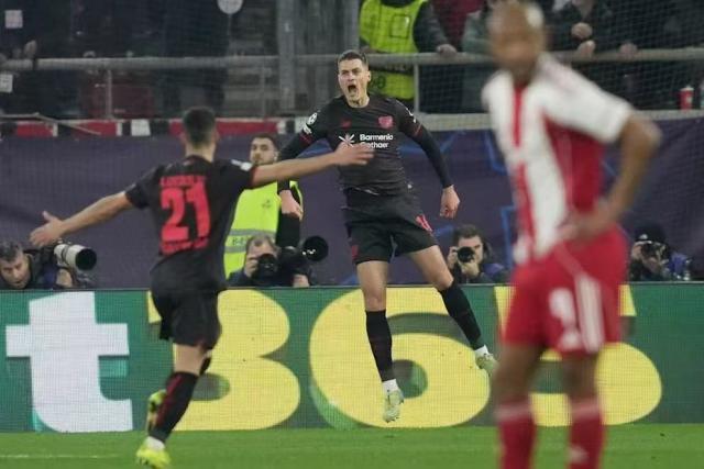 2026年02月25日 勒沃库森0-0奥林匹亚科斯总比分2-0晋级欧冠16强 格里马尔多中框